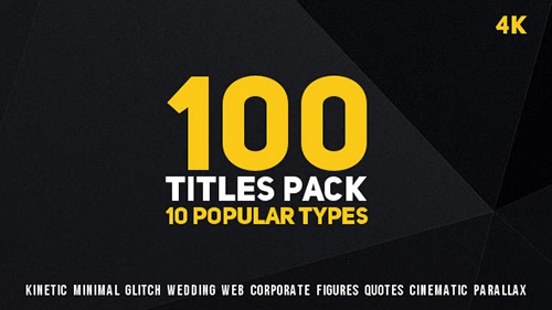 100 Titles Pack (10 popular types) - Project for After Effects (Videohive) After Effects Version CS5 - CC 2015 | Resizable | 13 May 16 | No plugins | 131MB